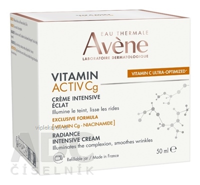 Intenzívny rozjasňujúci krém, ktorý obsahuje 3 dermatologicky aktívne zložky: Vitamín Cg (askorbyl glukozid, vysoko stabilnú formu vitamínu C), niacinamid, kyselina hyalurónová. Výrobok obsahuje 93 % prírodných zložiek bez zložiek živočíšneho pôvodu.