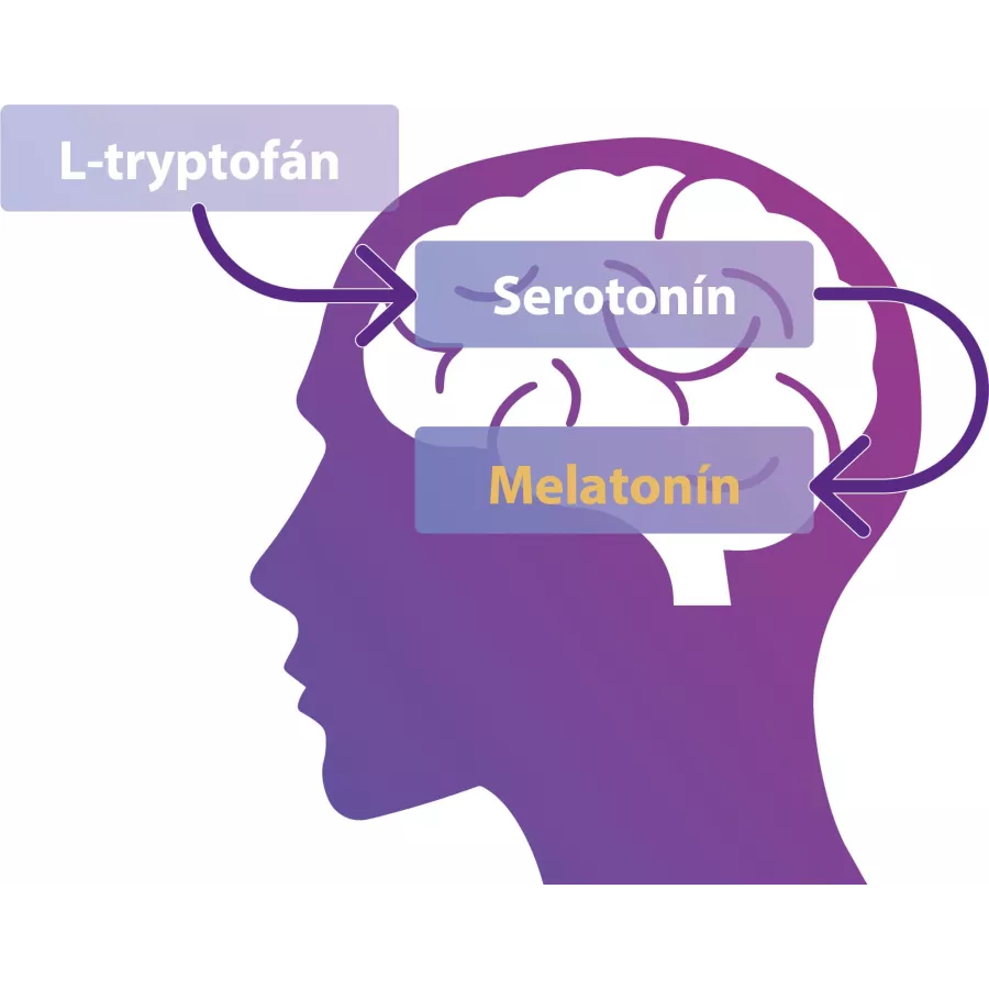 - Esenciálna aminokyselina tryptofán – okrem toho, že tryptofán je esenciálna (životne dôležitá) aminokyselina a plní v organizme veľa dôležitých úloh, je zároveň aj východiskovou látkou pre tvorbu dôležitého neurotransmiteru sérotonínu, ktorý plní v ľudskom tele úlohu tzv. „posla“. Je to látka, ktorá slúži ako prenášač – sprostredkúva v synapsách chemický prenos nervových informácií. Nervová sústava okrem iného obsahuje nervové bunky – neuróny, ktoré majú dlhé výbežky, pomocou ktorých sa prenášajú informácie. Medzi jednotlivými výbežkami sa nachádza priestor – špeciálna oblasť, kde sú prítomné rôzne biochemické látky. Tieto látky zodpovedajú za to, aby sa informácia, ktorá ku nim dorazila, dostala ďalej do cieľového tkaniva, či orgánu. Ide o tzv. mediátorov – poslov, odborne nazývaných ako neurotransmitery. K neurotransmiterom patrí aj hormón sérotonín. Práve jeho chemickou premenou za tmy vzniká melatonín, dôležitý hormón pre spánok. Hladina tryptofánu v krvi je teda rozhodujúca v procese prirodzenej tvorby nielen melatonínu, ale aj spomínaného sérotonínu (známeho aj ako hormón šťastia).