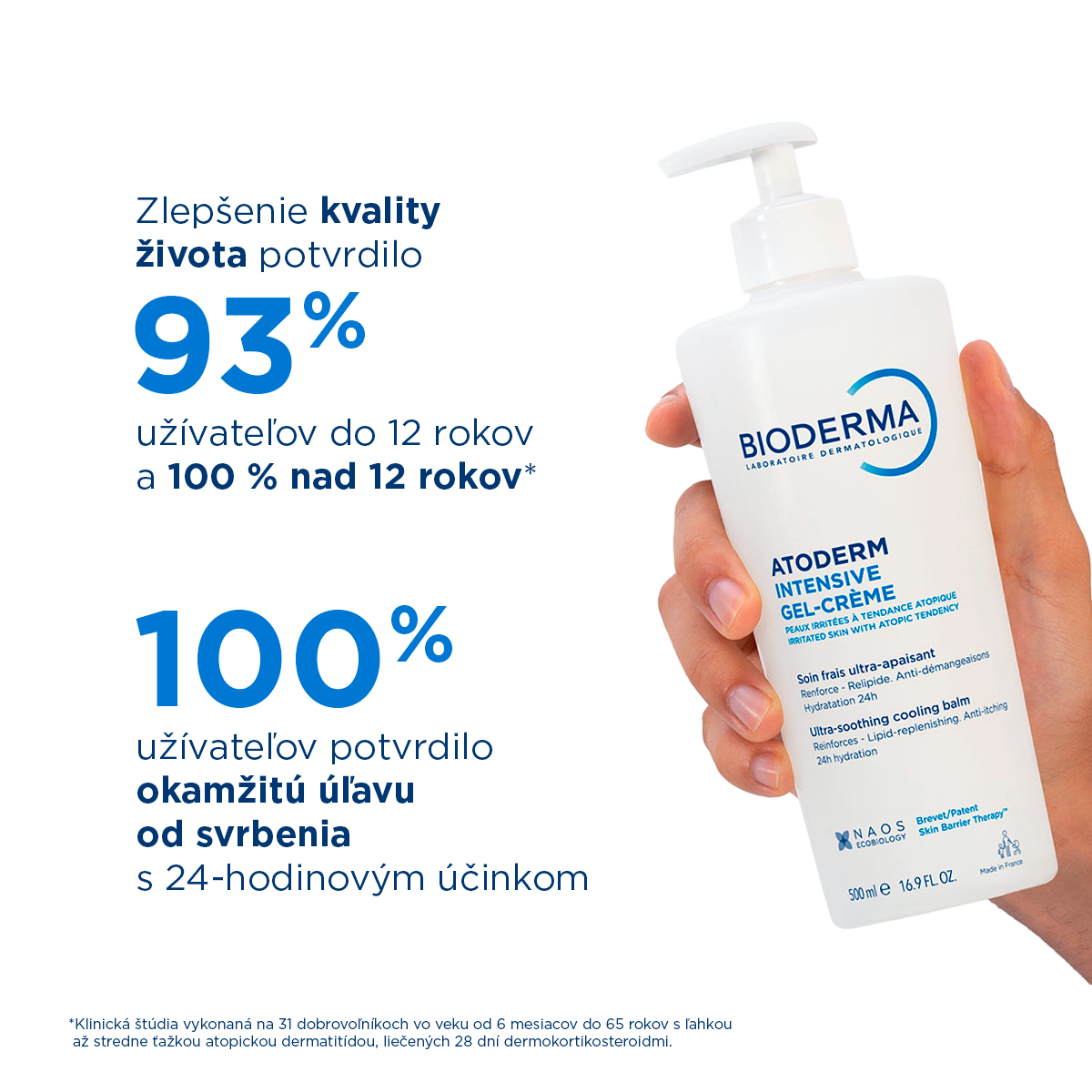- Atoderm Intensive gél-krém spĺňa ekobiologické podmienky NAOS. Predstavuje produkt s jedinečnou textúrou – účinný a príjemný na aplikáciu, v súlade so životným štýlom pacienta.