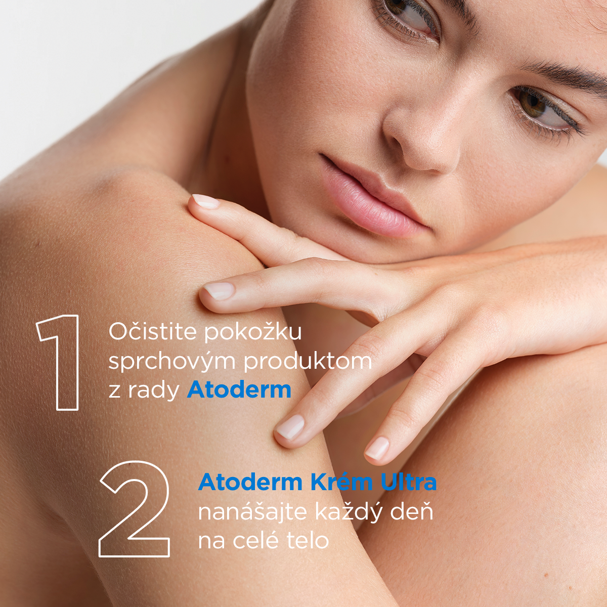 Aplikujte krém Atoderm Ultra na pokožku po kúpeli raz alebo dvakrát denne. Tvár a telo: Krém nanášajte na tvár a telo podľa potreby. Vhodné pre celú rodinu (dospelí, deti, bábätká). Nekomedogénny – Vylepšená príjemná, krémová a pohodlná textúra – Nelepivý, nemastný zvláčňujúci krém – Ľahko roztierateľný a rýchlo sa vstrebáva – Neperfumovaný. K dispozícii je aj parfumovaná verzia.
