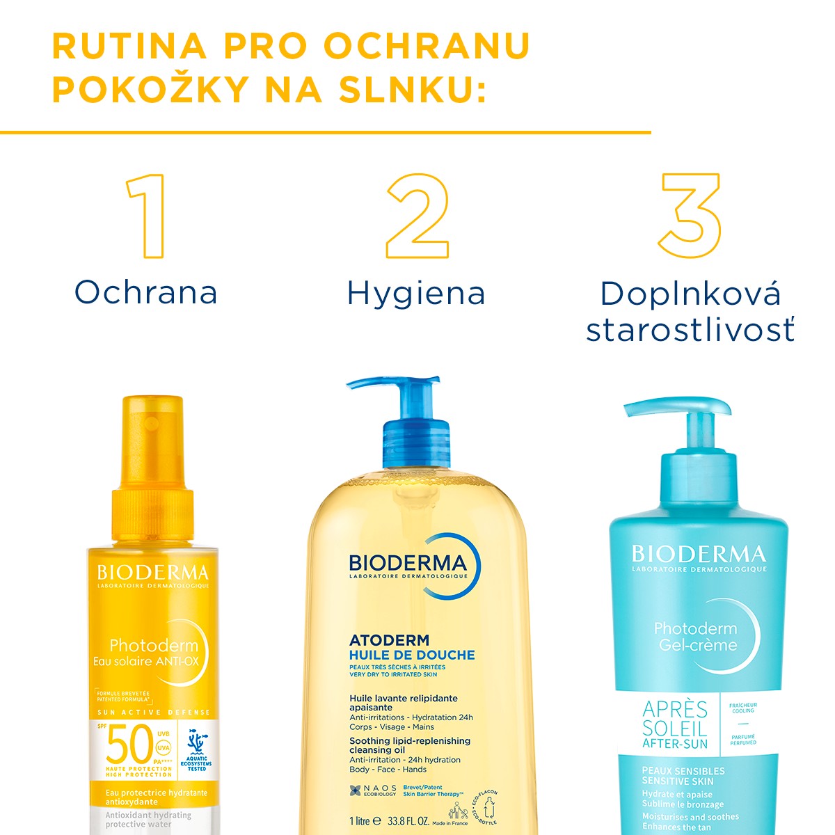 - SUN ACTIVE DEFENSE PATENT, vynájdený spoločnosťou BIODERMA, je inovatívna technológia slnečnej ochrany, zosilnená voči UVA žiareniu, kombinuje UV filtre s biologickou ochranou,