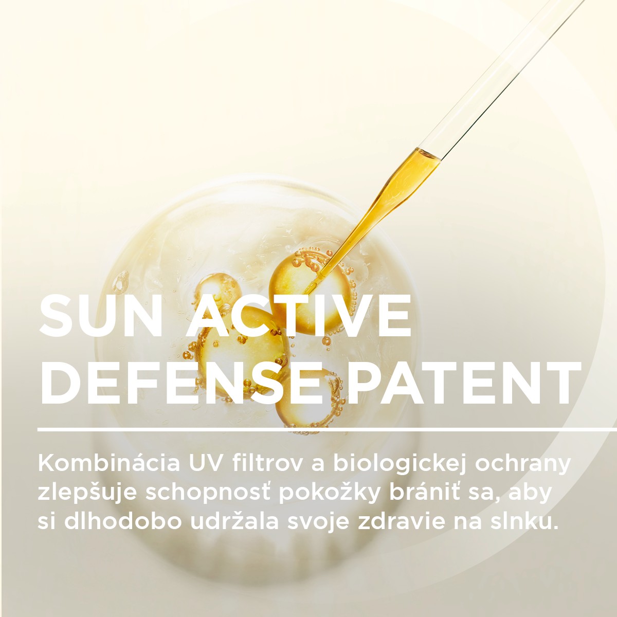 - SUN ACTIVE DEFENSE PATENT, vynájdený spoločnosťou BIODERMA, je inovatívna technológia slnečnej ochrany, zosilnená voči UVA žiareniu, kombinuje UV filtre s biologickou ochranou,