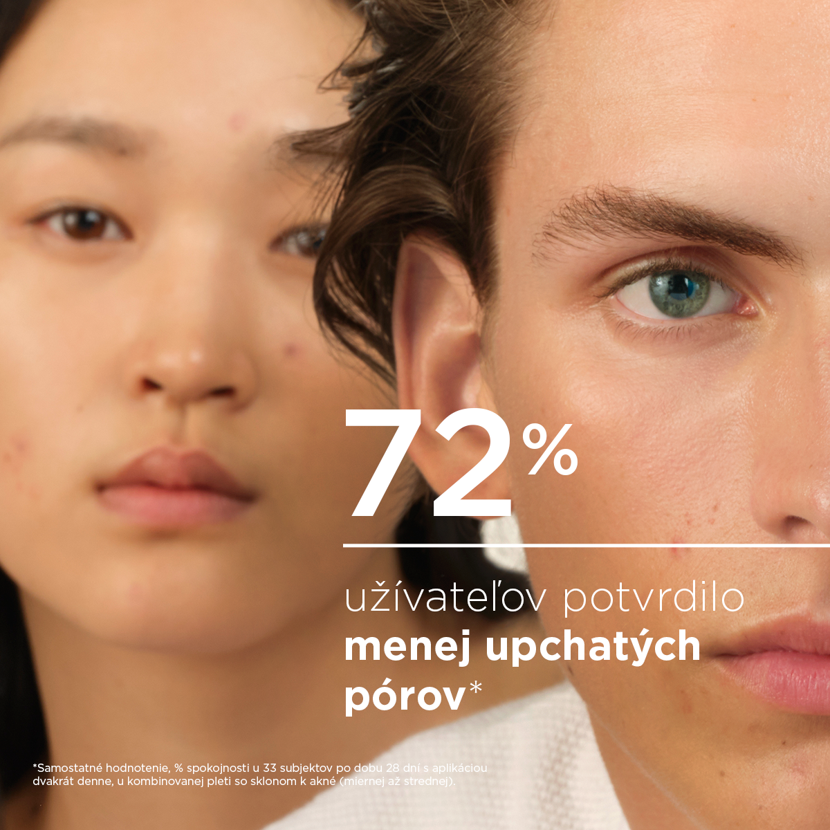 *Samostatné hodnotenie, % spokojnosti u 33 subjektov počas doby 14 dní s aplikáciou dvakrát denne, u kombinovanej pleti so sklonom k akné (mierne až stredné). **Dermatologické hodnotenie u 29 subjektov počas doby 28 dní s aplikáciou dvakrát denne. ***Dermatologické hodnotenie u 30 subjektov počas doby 21 dní s aplikáciou dvakrát denne, u kombinovanej pleti so sklonom k akné (mierne až stredné).