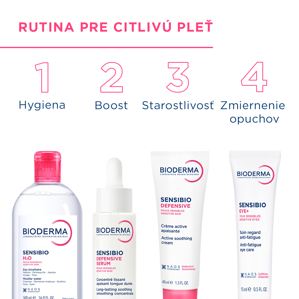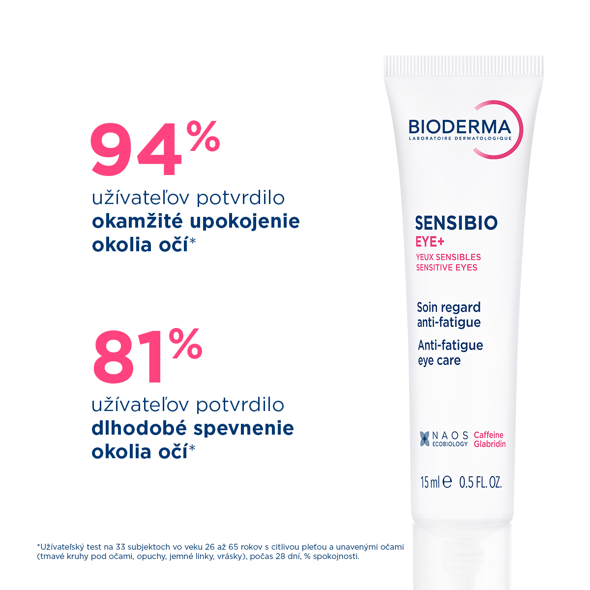 Sensibio Eye+ od spoločnosti NAOS využíva pokročilé vedecké poznatky v starostlivosti o túto krehkú oblasť. Obsahuje kofeín a biomimetický peptid, ktoré sa navzájom dopĺňajú vo svojich schopnostiach zmierňovať opuchy a tmavé kruhy. Kofeín pomáha spevniť pleť a redukovať opuchy, zatiaľ čo biomimetický peptid zlepšuje mikrocirkuláciu a zmierňuje modré kruhy pod očami.