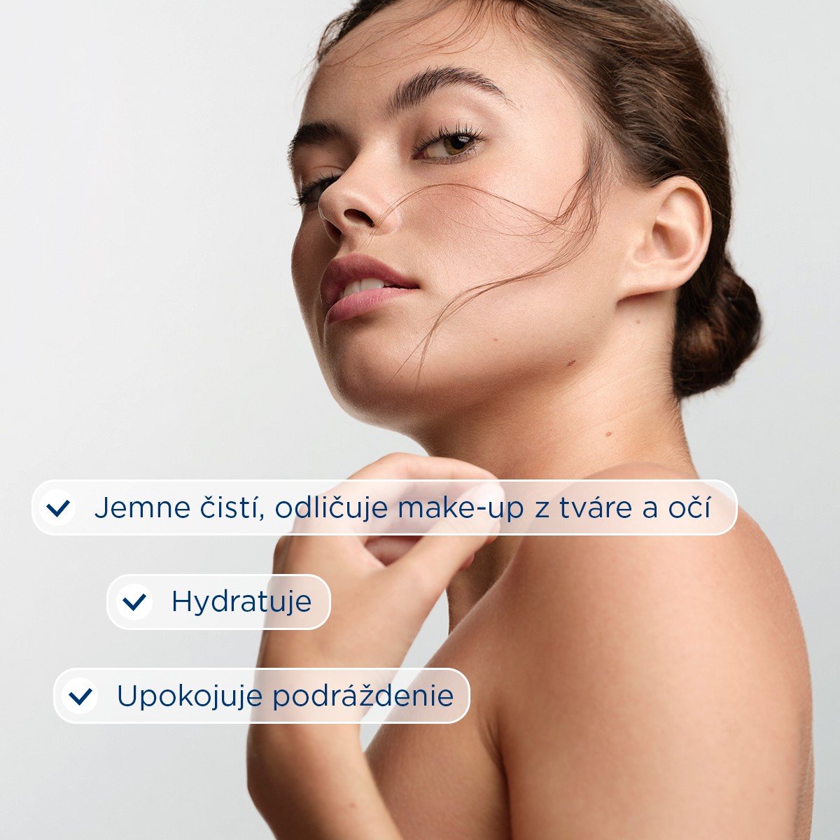 - jemne čistí a odstraňuje make-up z tváre a očí,