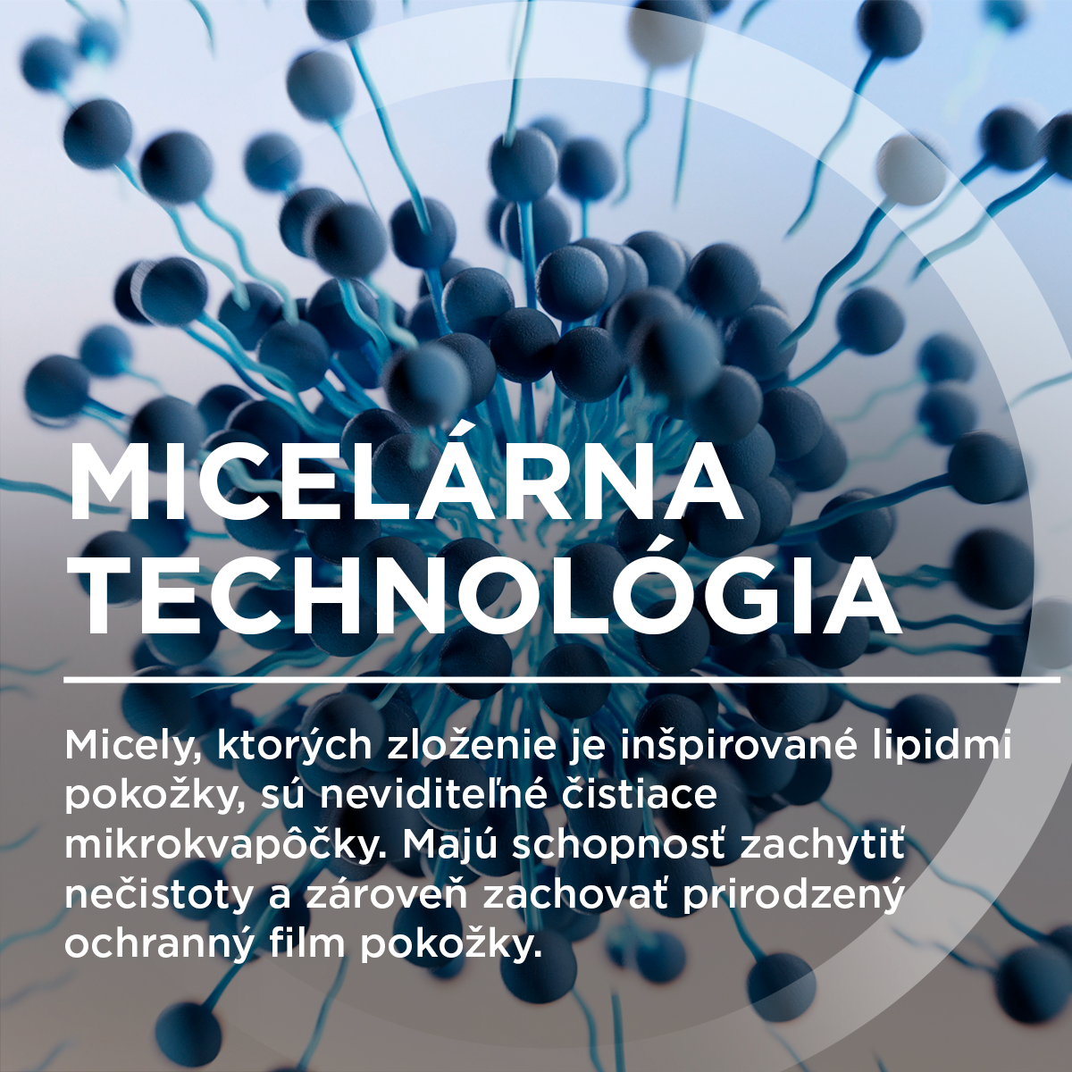 Micelárna technológia, zložená z micel, vyvinutá pokročilým výskumom spoločnosti Bioderma, jemne čistí nečistoty z tváre (make-up, znečistenie, peľ) a zároveň zachováva prirodzený ochranný film pleti.
