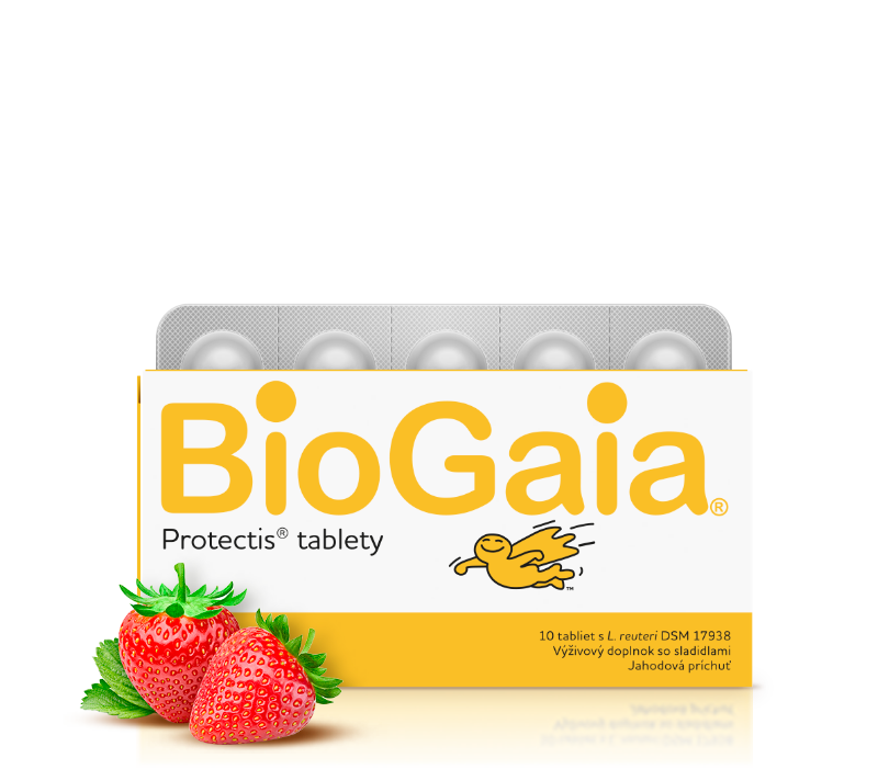 Žuvacie tablety BioGaia predstavujú jednoduchý, bezpečný a pohodlný spôsob nadobudnutia a udržania zdravej črevnej rovnováhy a zlepšenia tráviacej funkcie. Jedna tableta denne zaisťuje odporúčanú dávku 100 miliónov živých baktérií Lactobacillus reuteri Protectis. Tablety BioGaia sa môžu žuť, prehĺtať alebo nechať rozpustiť v ústach už od veku 3 rokov.