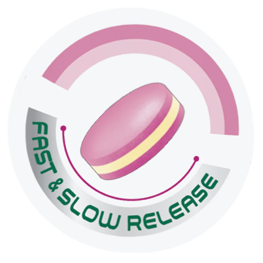 Technológia Fast & Slow Release využíva jedinečné modulárne uvoľňovanie zložiek vďaka trojvrstvovej tablete, ktorá obsahuje dve vonkajšie vrstvy s okamžitým uvoľňovaním a strednú vrstvu s predĺženým uvoľňovaním, čím zabezpečuje regulované uvoľňovanie účinných látok do správnej oblasti gastrointestinálneho traktu podľa ich absorpčných schopností pre optimálnu absorpciu.