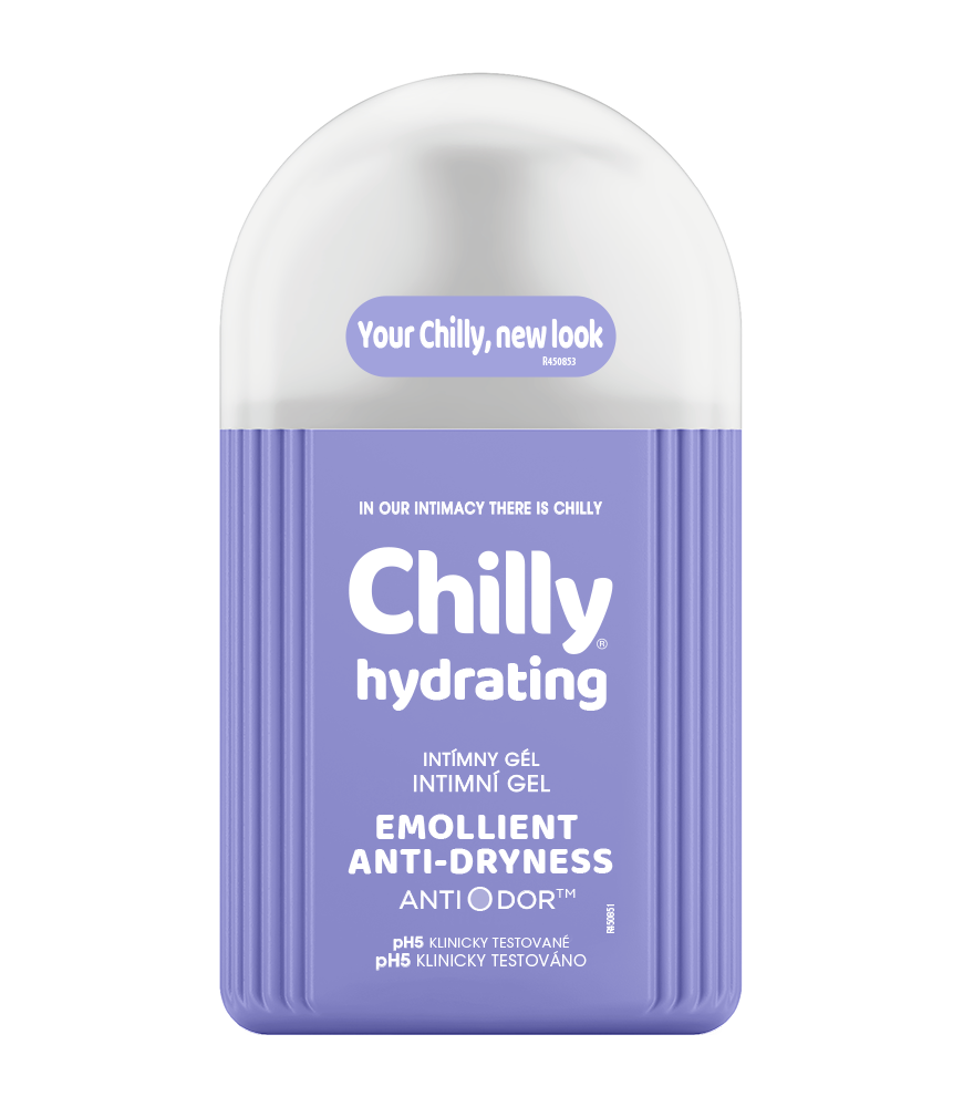 Chilly hydrating je obohatený o zmäkčujúcu aktívnu látku, ktorá zlepšuje hydratáciu slizníc tým, že poskytuje výživu a rýchlu úľavu aj v prípade intímnej suchosti.