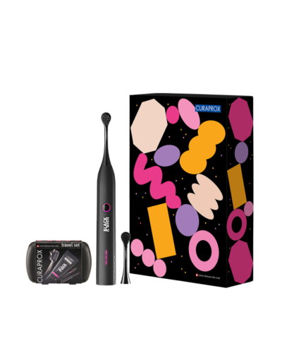 CURAPROX DARČEKOVÁ KRABICA Hydrosonická kefka Black Is White + Cestovný set