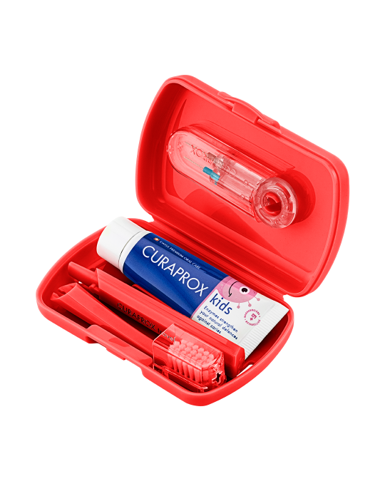 CURAPROX Detský cestovný set červený