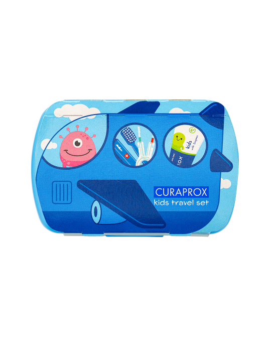 To je nový detský cestovný set Curaprox kids, vďaka ktorému budú mať naši malí zákazníci a zákazníčky všetko potrebné pre zdravý detský úsmev vždy po ruke.