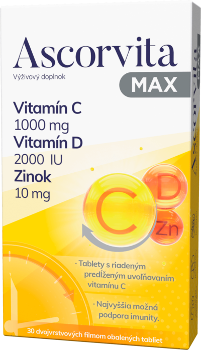 ASCORVITA MAX vitamín C, D a zinok 30 tabliet
