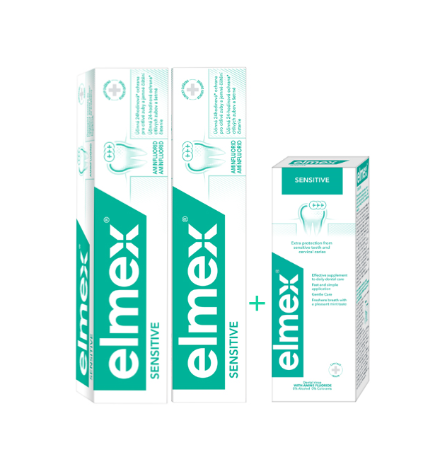ELMEX SENSITIVE zubná pasta 2×75 ml + ústna voda 100 ml