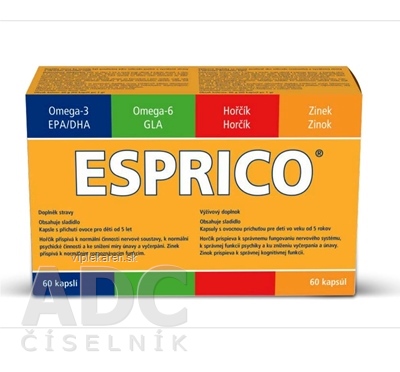 Dietetický prípravok na zvláštne medicínske účely (bilančná diéta), určený k diétnemu postupu pri poruchách nedostatku pozornosti/hyperaktivity (NP (H)), ktoré sú sprevádzané poruchami koncentrácie a poruchami učenia. Prípravok pozostáva z vyváženej zmesi oleja z morských rýb a pupalkového oleja a je tak bohatý na polynenasýtené mastné kyseliny(Omega-3-EPA, Omega-6-GLA). Esprico tak zodpovedá zvláštnym požiadavkám na detskú stravu s NP(H) a pokrýva ich medicínsky podmienené potreby na výživné látky. Na základe špeciálnych potrieb pri NP(H) je prispôsobený obsah minerálnych látok a vitamínov, zvýšený je obsah magnézia a zinku. Bol vyvinutý na základe vedeckých poznatkov o stravovacích potrebách detí od 5 rokov s NP / H. Ovocné žuvacie kapsuly obsahujú olej z morských rýb s vysokým obsahom Omega-3 ako i Omega-6-mastných kyselín.