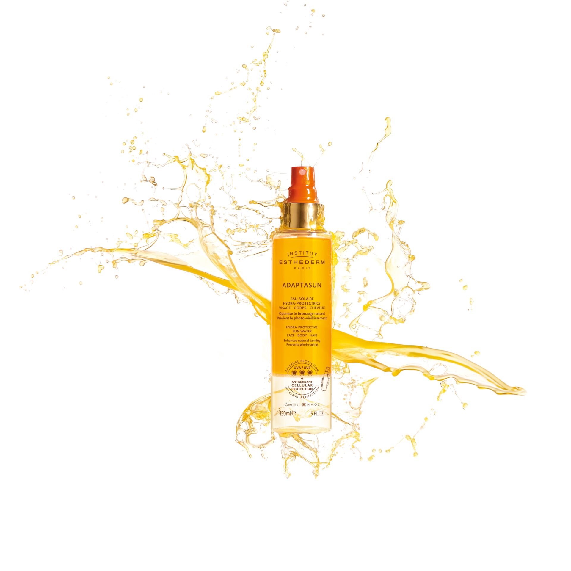 Prvá dvojfázová slnečná voda so sviežou ultraľahkou textúrou a so silnou ochranou pred UV žiarením. Táto ošetrujúca voda, ktorá urýchľuje opálenie, chráni pred slnkom a fotostarnutím a zároveň hydratuje pokožku v jednom kroku. Je ideálna pre tých, ktorí majú radi vodové textúry a jej nemastné zloženie poskytuje lahodný pocit nezaťaženej pokožky. Jej dvojfázové zloženie spája jemnosť biomimetických lipidov s dlhotrvajúcou hydratáciou bunkovej vody. Podporuje rovnomerné, intenzívne a dlhotrvajúce opálenie a ochranu buniek. Účinným bojom proti voľným radikálom zabraňuje starnutiu pokožky. Pokožka si potom zachováva svoju kvalitu a mladistvosť aj v tých najnáročnejších podmienkach. Ľahko a rýchlo sa vstrebáva a zanecháva pokožku hydratovanú, pružnú a nádherne voňajúcu bez pocitu jej zaťaženia.