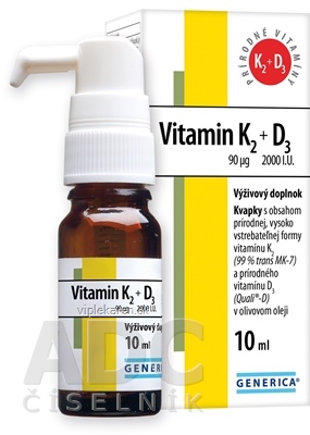 GENERICA Vitamin K2 90 µg + D3 2000 I.U. kvapky 1×10 ml