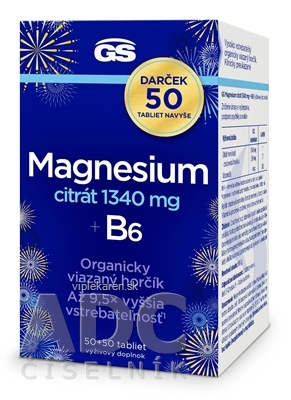 GS Magnesium citrát 1340 mg + B6 50+50 tabliet navyše