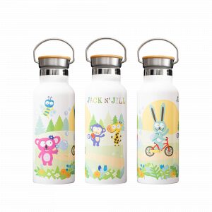 Je z nehrdzavejúcej ocele, s bambusovým uzáverom a nerezovým madlom pre pohodlné nosenie.