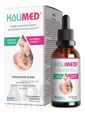 KoliMed, výživový doplnok pre úľavu pri hromadení črevných plynov a nepokojnom brušku vďaka obsiahnutým, vysoko kvalitným, prírodným olejom z rasce a anízu. Zloženie je doplnené o frukto-oligosacharidy (FOS) s prebiotickou aktivitou, ktoré prispievajú k podpore trávenia a k celkovému komfortu zažívania.