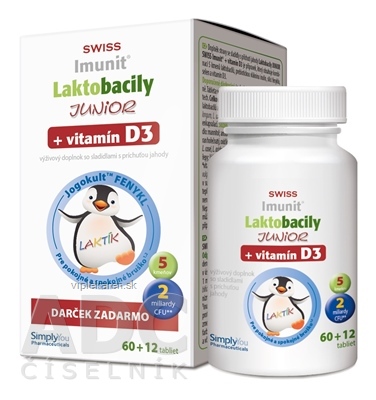 SWISS Imunit Laktobacily JUNIOR + vitamín D3 60+12 tabliet zadarmo