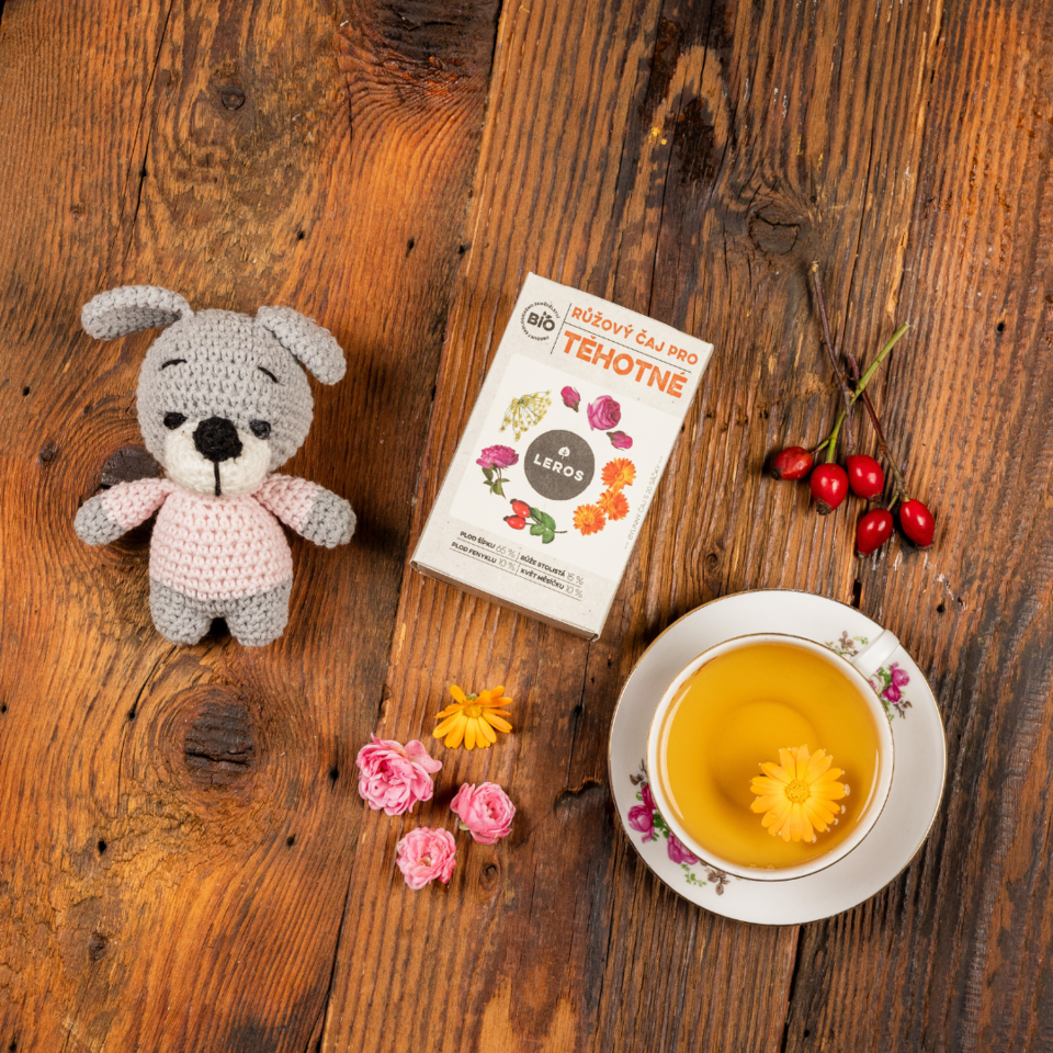 Blahodarné účinky bylín pre budúce matky. Bylinná zmes v bio kvalite s okvetnými lístkami ruží. Má pozitívny vplyv na zdravie a relaxáciu žien počas tehotenstva, je vhodná ako doplnok pitného režimu nastávajúcich mamičiek. Bylinky a plody pochádzajú z ekologického poľnohospodárstva. Ruža stolistá pozitívne pôsobí na gynekologické zdravie a prispieva k relaxácii a zdravému spánku. Šípky majú antioxidačné účinky, podporujú prirodzenú imunitu a spolu s feniklom prispievajú k zdravému tráveniu. Nechtík lekársky podporuje normálnu činnosť pečene a čriev. Farba nálevu je žltá až svetlooranžová. Chuť je mierne kyslá s príjemnou kvetinovou vôňou ruží a nechtíka.