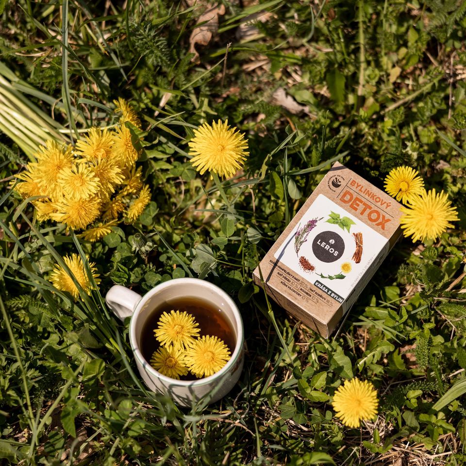 Bylinný čaj s púpavou a žihľavou, ktoré pomáhajú k detoxikáciou Vášho organizmu.
