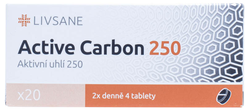 LIVSANE Aktívne uhlie 250 obsahuje v každej tablete 250 mg aktívneho uhlia.