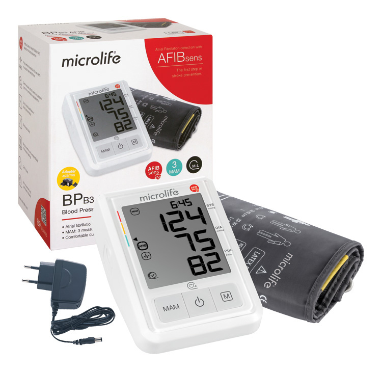 BP B3 AFIB je základný model novej generácie tlakomerov Microlife, ktorý umožňuje detekciu atriálnej (predsieňovej) fibrilácie počas merania krvného tlaku doma. AF je jednou z najčastejších príčin mozgovej príhody, ale často ju nemožno rozpoznať. BP B3 AFIB je klinicky validovaný pre viaceré špeciálne skupiny pacientov a preto poskytuje presné meranie krvného tlaku takmer pre každého.
