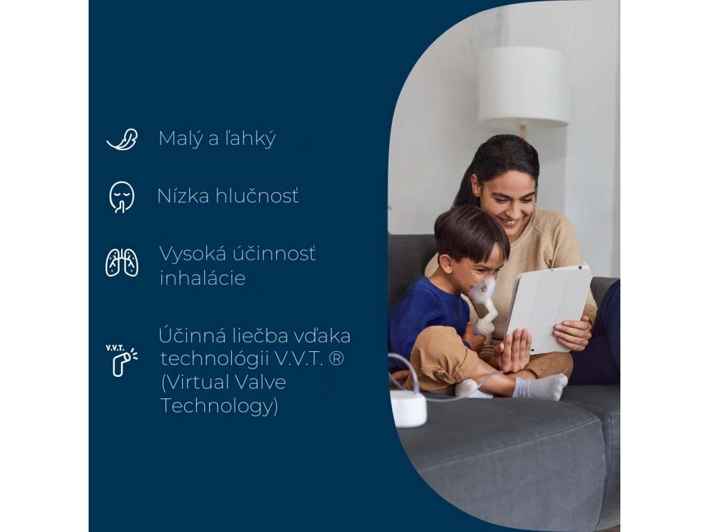 Kompaktný a tichý inhalátor s vysokou účinnosťou rozprašovania liečiva priamo do pľúc. Vďaka malým rozmerom je ideálny na použitie doma aj na cestách. Tichá prevádzka zabezpečuje pohodlné inhalovanie bez rušivého hluku.