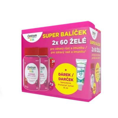 Centrum kids GUMMIES malina a jahoda želé 2 x 60 ks + darček: zubná pasta