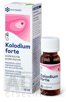 Balenie prípravku Kolodium forte obsahuje 10 ml roztoku naplneného v hnedej sklenenej fľaštičke s uzáverom a so špachtličkou. Viac na adc.sk