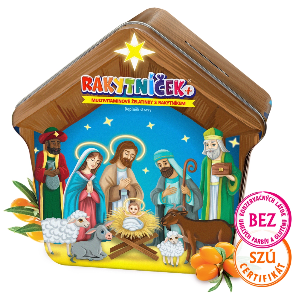 Prvé želatínky na trhu s rakytníkom. Rakytník pomáha podporovať imunitu, čo je vhodné najmä pre deti, ktoré sú v kolektíve (školy, škôlky, krúžky, tábory). Želatínky majú skvelú chuť vďaka obsahu 20% ovocnej šťavy. Obsahuje zmes ovocných koncentrátov z hrozna, pomaranča, jablka, mandarínky, grapefruitu, mučenky (passion fruit) a citróna; pyré z marhule, broskyne, manga, nektárinky, banánu, guavy. Obsahujú dokopy 9 vitamínov a rakytník. Neobsahujú žiadne konzervačné látky, sladidlá, ani pridané farbivá.