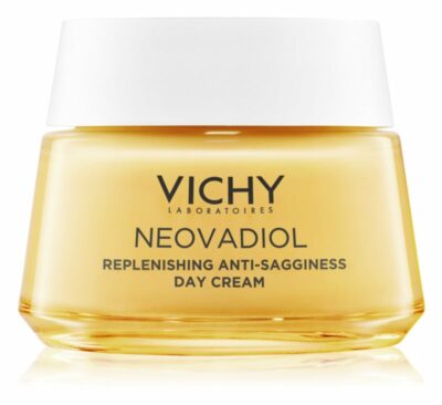 VICHY NEOVADIOL Meno 5 Dvojfázové sérum pre pleť v období peri a postmenopauzy. Hormonálne zmeny v období menopauzy stupňujú 5 viditeľných známok starnutia pleti. Laboratóriá Vichy spojili Termálnu vodu Vichy vulkanického pôvodu s Pro-Xylanom, výťažkom z kasie, vitamínmi B3-Cg-E a omega mastnými kyselinami z rastlinných olejov. Toto sérum poskytuje 5 benefitov: vrásky vyzerajú vyhladenejšie, pleť pôsobí pevnejšia a intenzívne vyživená. Odtieň pleti je zjednotenejší a žiarivejší.
