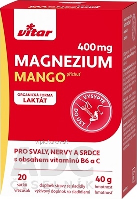 VITAR Magnézium 400 mg + vitamíny B6 a C vrecúška s príchuťou manga 1×20 ks