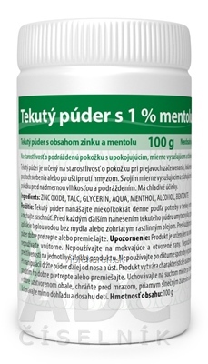 Tekutý púder s mentolom je určený na starostlivosť o pokožku pri prejavoch začervenania, lokálneho podráždenia, pocitoch svrbenia alebo po uštipnutí hmyzom. Svojím mierne vysušujúcim a sťahujúcim účinkom chráni pokožku pred nadmernou vlhkosťou a podráždením. Má chladivé účinky.