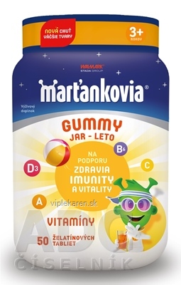 Ak ide o výber kvalitného detského multivitamínu v jarnom a letnom období, je dôležité nájsť nie iba ten, ktorý vašim deťom chutí, ale zároveň taký, ktorý obsahuje široké spektrum dôležitých vitamínov v odporúčaných denných dávkach. A takýto sú Marťankovia® Gummy Jar – leto! Dajte deťom chutných a zábavných Marťankov a podporte tak ich imunitu v jarnom aj letnom období!