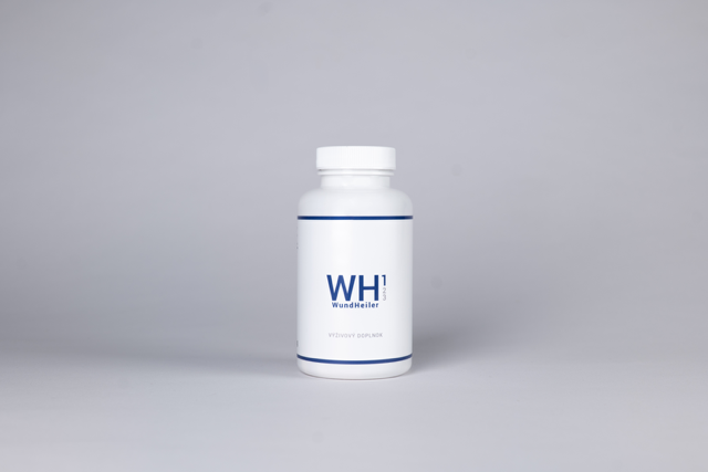 WH1:Nutričná podpora pri hojení rán by mala byť súčasťou štandardnej terapeutickej praxe. Cielene konfigurovaný výživový doplnok WH1 pre optimalizáciu procesov v prvej fáze hojenia rany, s obsahom omega 3 NMK, vitamínu C, A, zinku, železa, vitamínov skupiny B a vybraných aminokyselín (arginínu) predstavuje účinnú podporu regenerácie kože a mäkkých tkanív.Odporúčané dávkovanie: 3 kapsuly denne spolu s jedlom, zapiť dostatočným množstvom tekutiny